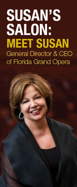 Susan's Salon: Meet SusanJoin Florida Grand Opera’s General Director Susan T. Danis and in-house opera expert Justin Moss for an insightful, behind the scenes look at Florida Grand Opera with an opportunity to ask questions and hear some delightful singing from the performers in the Florida Grand Opera Young Artist Program. Each musical selection with have a brief overview of the opera scene from which it is performed. With the following members of the Young Artist Program: